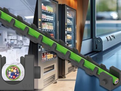 Of het nu gaat om voedselautomaten, laboratoriumapparatuur of elektrische deuren: wanneer ruimte schaars is, zien ontwerpers vaak af van geleiders voor afzonderlijke bewegende kabels – en lopen daarmee het risico op kabelbeschadiging en onnodige onderhoudskosten. Een nieuwe, uit één stuk spuitgegoten en bijzonder compacte kabelrups van hoogwaardig kunststof van igus is ontworpen om dit te verhelpen. Aangezien dit product momenteel nog een ontwerpstudie is, is de in Keulen gevestigde specialist in motion plastics nu op zoek naar geïnteresseerde bedrijven die de energietoevoersystemen in proefprojecten willen gebruiken en verder willen ontwikkelen tot serieproductie.